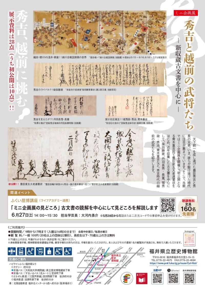 福井県立歴史博物館 ミニ企画展「秀吉と越前の武将たち ~新収蔵古文書を中心に~」(5月15日~7月7日)