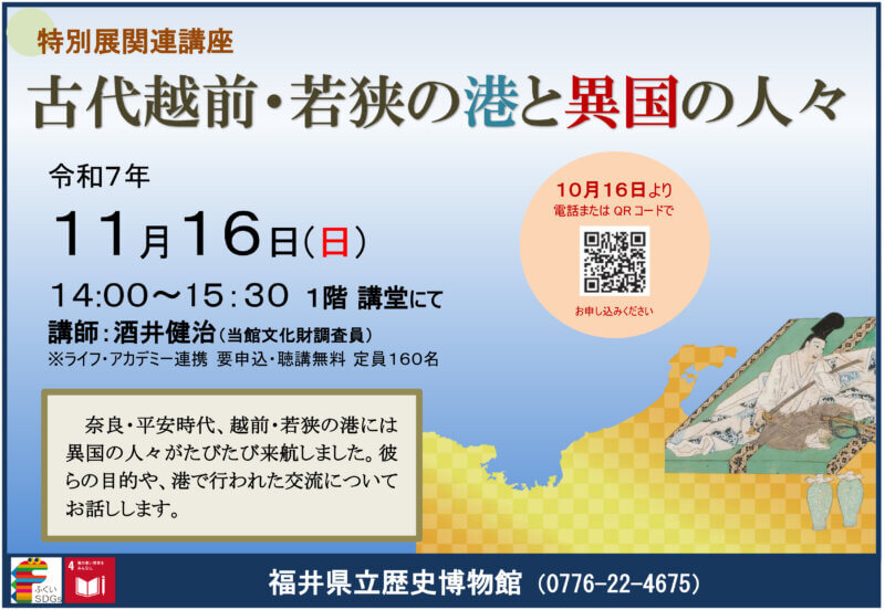 福井県立歴史博物館 特別展「越前・若狭 異国との出会い」関連講座「古代越前・若狭の港と異国の人々」を開催します
